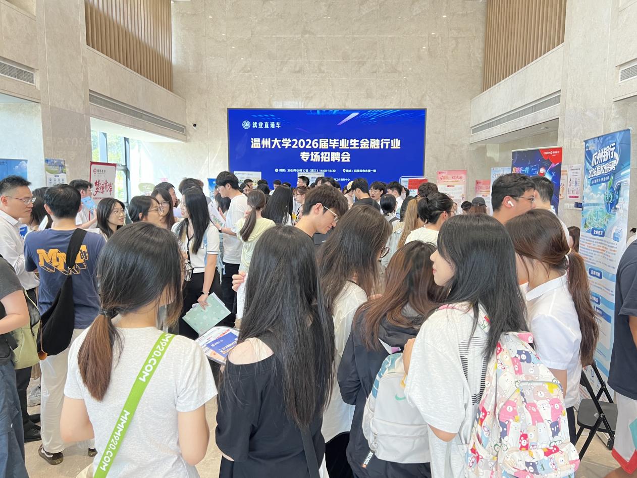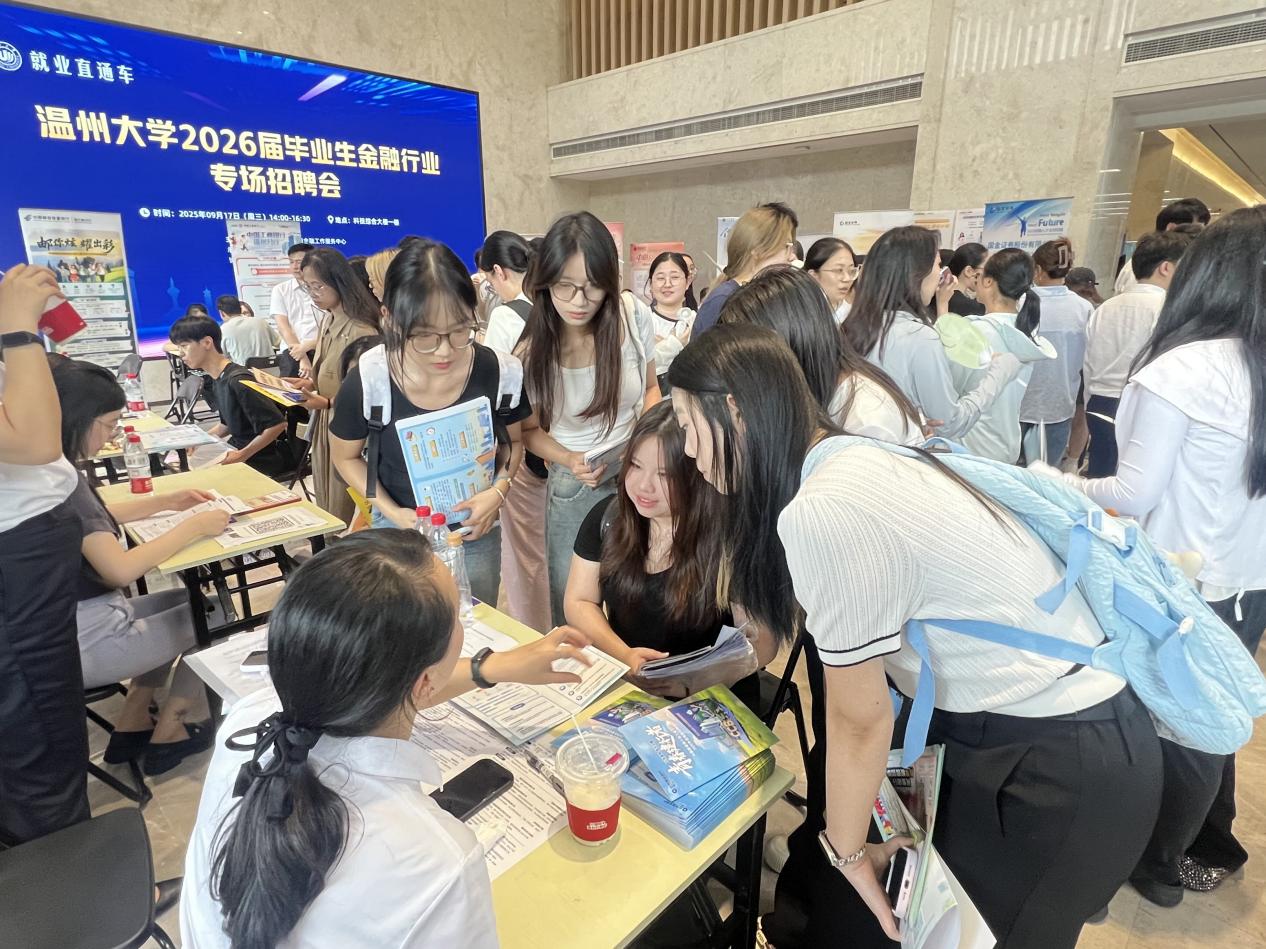 为深入贯彻落实党中央、国务院关于促进高校毕业生“稳就业”“保就业”决策部署。9月17日下午,温州大学2026届毕业生金融行业专场招聘会顺利举办。本次活动聚焦金融行业人才需求,为毕业生搭建高效求职平台,助力高质量充分就业。