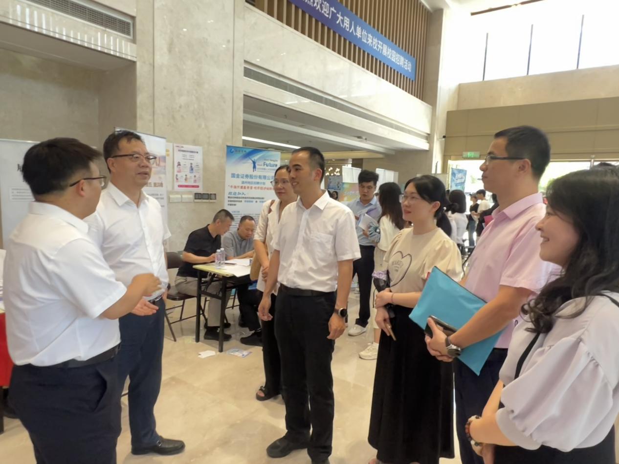 作为温州地区最优质、参会单位最全的金融行业专场招聘会,本场活动也得到了温州市相关部门指导和支持。温州市金融业联合会副会长兼秘书长金胜华、温州市金融工作服务中心合作服务处处长缪国展莅临现场指导,对温州大学就业工作给予高度肯定。温州大学招生就业处处长蔡锋、副处长魏晓晓,商学院院长罗建利、党委书记唐华、党委副书记曾蓓蕾等陪同交流,详细了解用人单位招聘需求和毕业生求职意向。