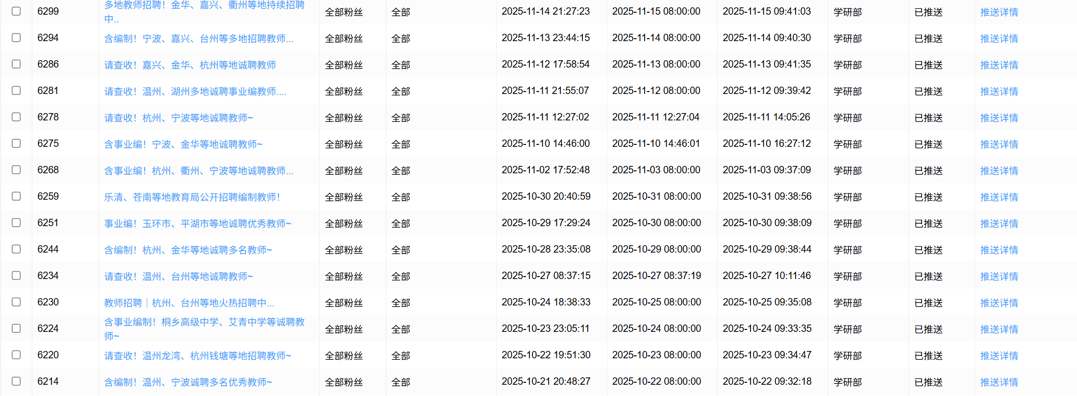 学研部在本学期公众号的运营方面,主推企业招聘会、校园宣讲会、招聘公告、教师招聘几个模块。